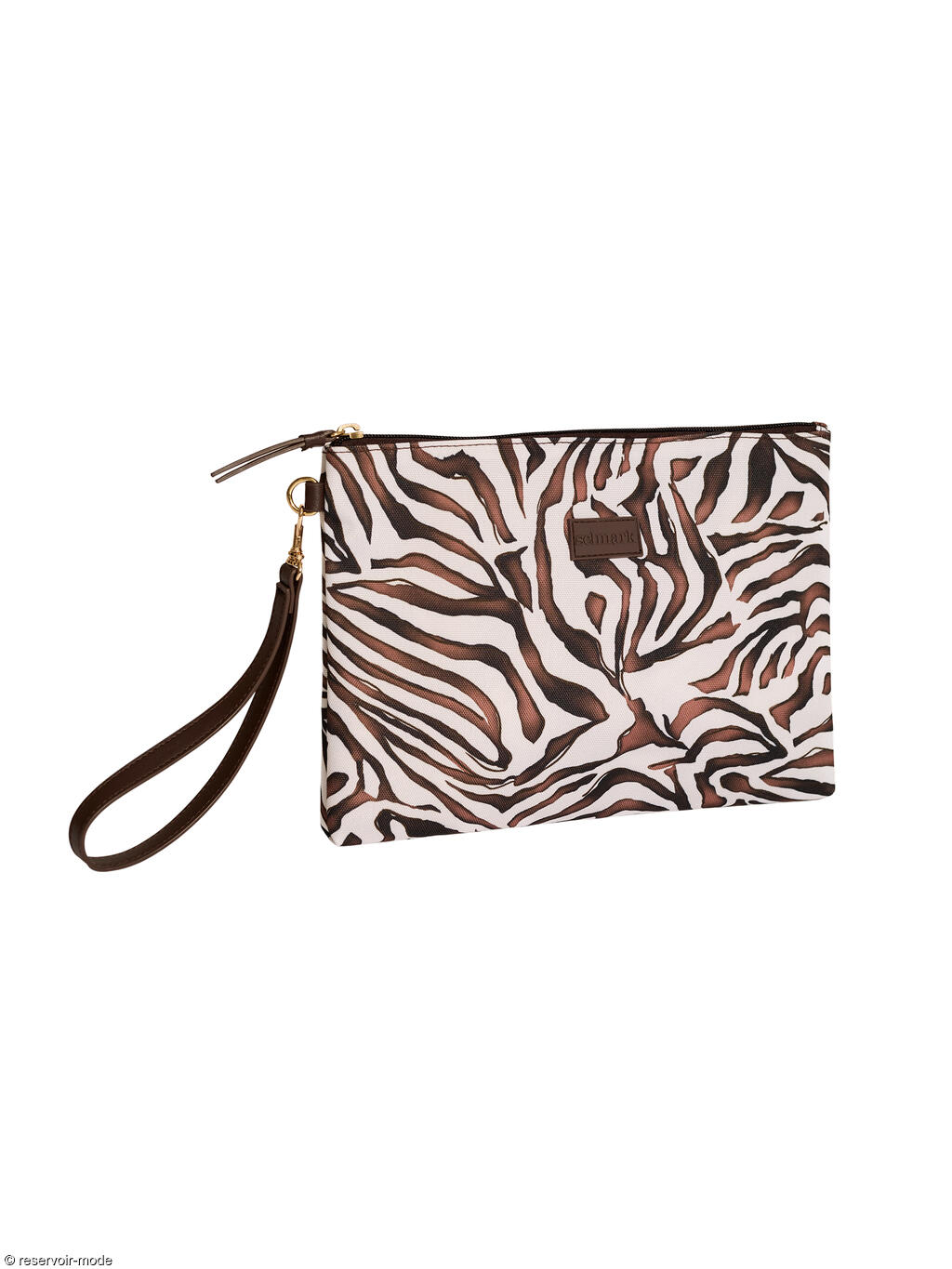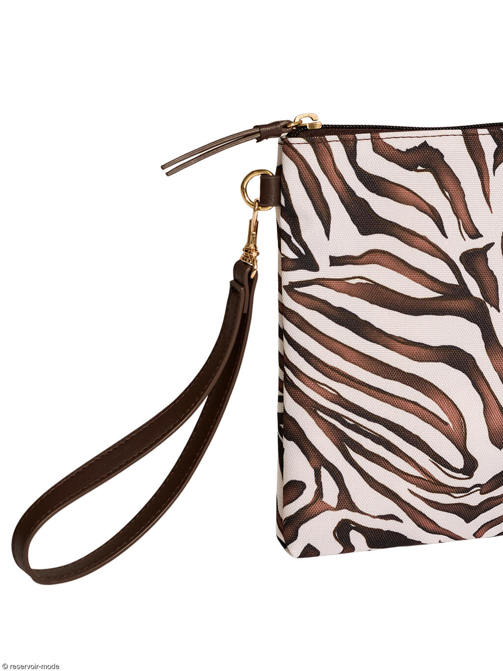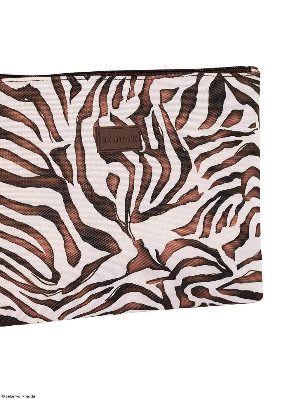Pochette estivale zébrée Complementos de la marque Selmark Mare.  Cette pochette est un accessoire élégant et pratique pour organiser vos petits essentiels. [voir la suite]
