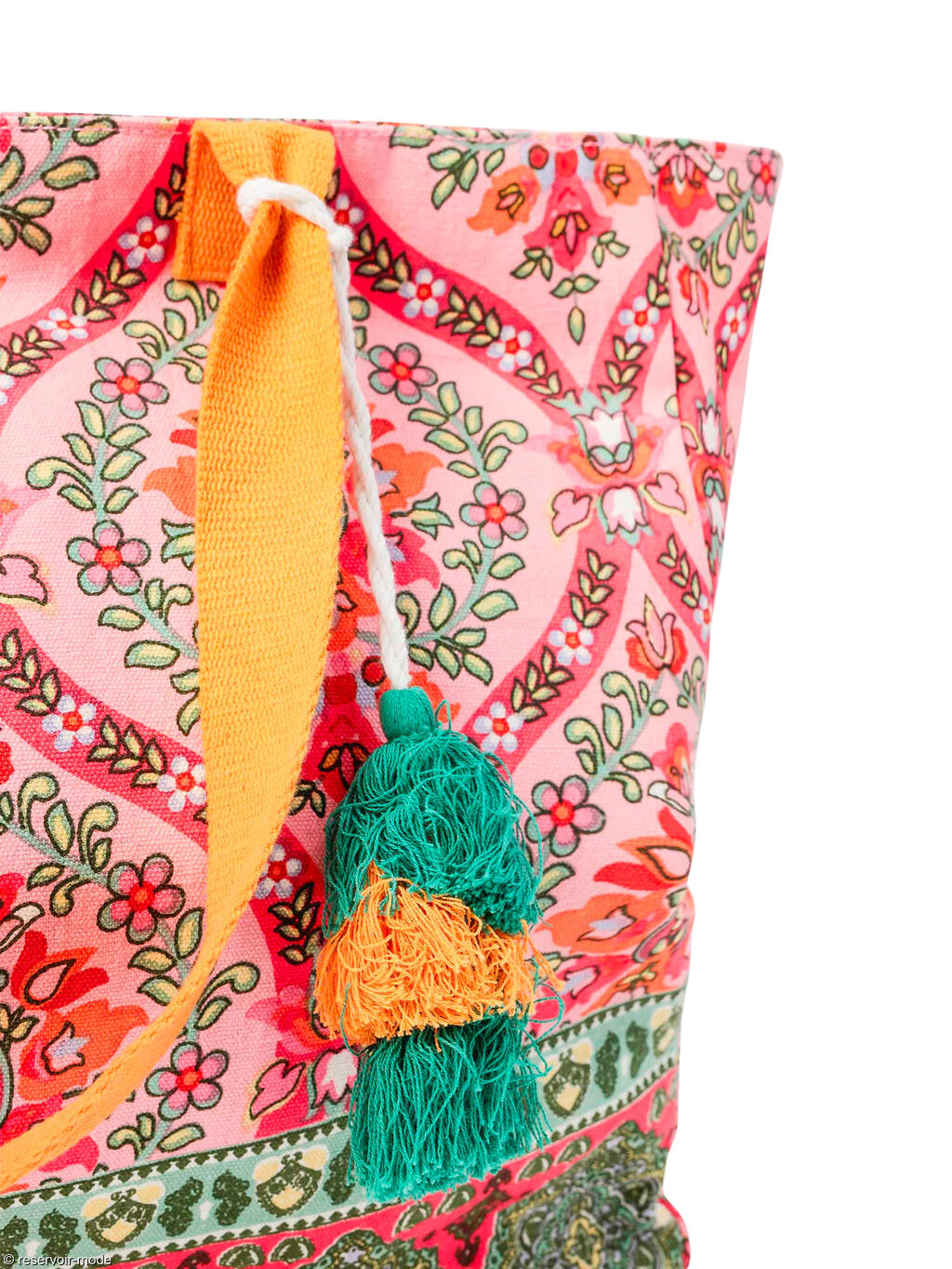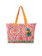 Sac de plage Pompom de la marque Admas.  Dimensions : 47 x 39 x 14 cm.  Sac spacieux confectionné dans un tissu imprimé aux tons jaunes dominants et aux détails [voir la suite]