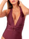 Ce maillot de bain une pièce dos nu incarne l’élégance sensuelle et intemporelle. Sa teinte profonde apporte une touche de raffinement et de modernité, parfaite pour sublimer le bronzage et mettre en valeur toutes les carnations. Le décolleté plongeant en V souligne la poitrine avec audace tout en restant harmonieux. À la taille, un drapé raffiné orné d’une boucle bijou ton sur ton vient structurer la silhouette et créer un effet galbant naturel. Les coques amovibles permettent d’ajuster le maintien et le volume selon les envies, assurant confort et mise en valeur personnalisée. Les bretelles se nouent dans la nuque, ce qui apporte une note glamour irrésistible et une allure féminine assumée. La coupe échancrée allonge la jambe pour une silhouette élancée. Ce maillot de bain est le parfait équilibre entre séduction et sophistication, idéal pour celles qui recherchent un look chic et affirmé sur la plage ou au bord de la piscine.