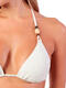 Cet ensemble de maillot de bain au tissu délicatement texturé,  donne un effet raffiné tout en restant minimaliste. Le haut est un triangle classique revisité, conçu pour mettre en valeur la silhouette. Les bonnets souples intègrent des coques amovibles, permettant d’ajuster le volume et le niveau de maintien selon les besoins. Il se noue élégamment dans la nuque et dans le dos, offrant une totale liberté de réglage. Des perles décoratives en bois et tons naturels sont placées sur les bretelles, apportant une touche bohème et chaleureuse qui contraste subtilement avec la pureté du blanc. Le bas assorti est un slip bikini échancré, pensé pour allonger visuellement les jambes et sublimer les hanches. Il reprend la même texture du tissu que le haut, créant un ensemble harmonieux. Les liens latéraux à nouer permettent un ajustement parfait et ajoutent une dimension féminine et délicate. L’ensemble respire une élégance simple, fraîche et lumineuse. Le blanc met en valeur le bronzage, tandis que les finitions soignées et les détails naturels en font un maillot à la fois chic, moderne et légèrement bohème. C’est un ensemble bikini fait pour être remarqué avec subtilité, parfait pour celles qui recherchent un look à la fois épuré et sophistiqué.