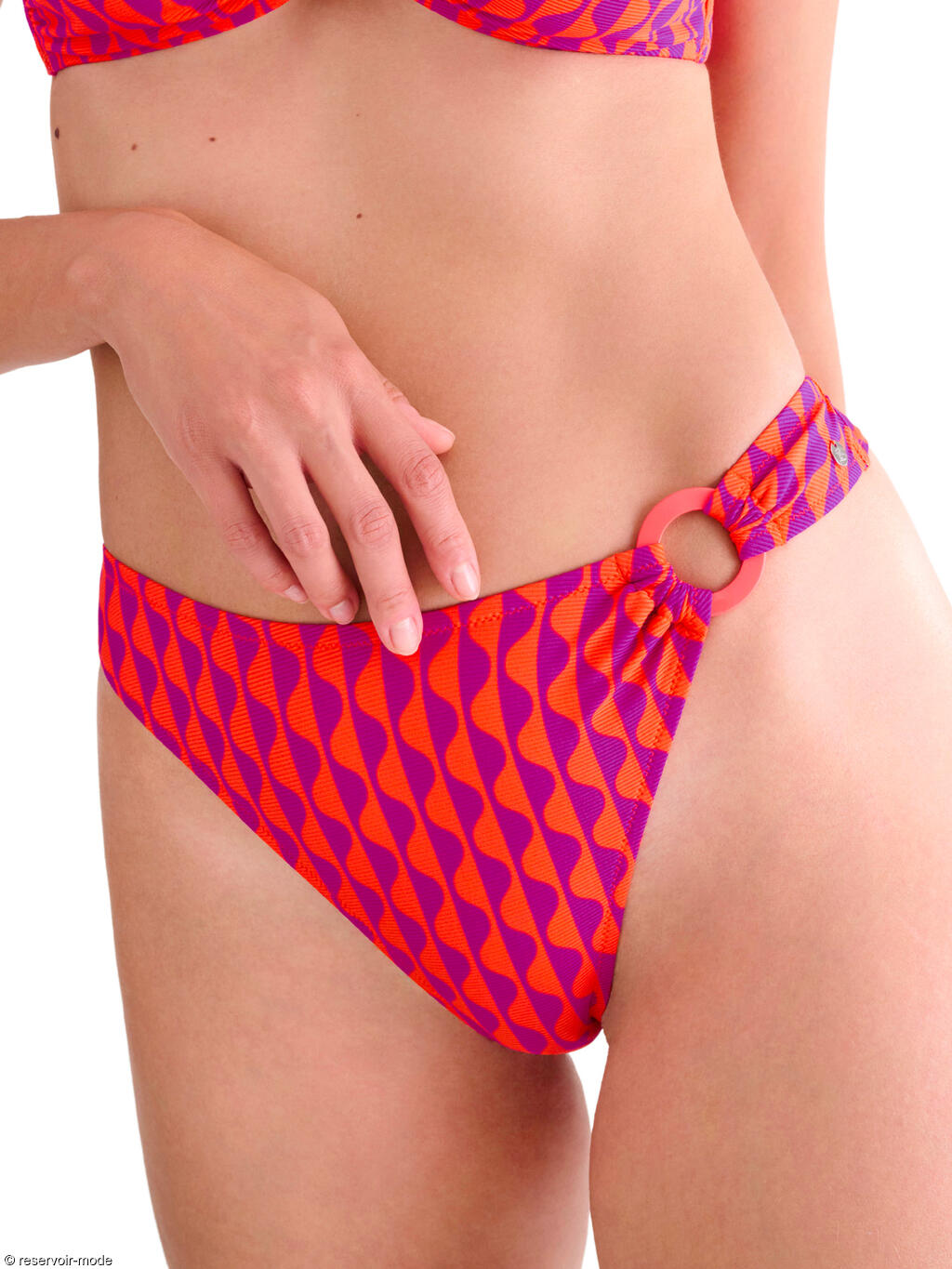 Découvrez cette collection dynamique qui allie le charme rétro des couleurs vives et la fonctionnalité pour un été actif ! Elle se caractérise par un imprimé géométrique ludique bicolore décliné en deux combinaisons de couleurs énergiques sur un tissu côtelé. L'une des combinaisons de couleurs est un orange-rose chaud et l'autre est un vert-violet fluorescent audacieux. Pour un équilibre des couleurs supplémentaire, les bretelles et les sangles sont monochromes, ajoutant un contraste tendance et accentuant l'esthétique rétro. Que vous recherchiez le maillot de bain idéal pour bronzer ou pour être active sur la plage, cette collection sera votre choix idéal pour l'été !