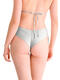 Brésilien tendance avec une coupe haute et un détail d'ajustement de la largeur à la taille. La ceinture et la coupe des jambes à l'avant sont sans coutures. Ajustement de la largeur sur le côté à l'aide de lanières. Coupe brésilienne sans coutures à l'arrière.