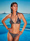Le motif, à l’allure reptilienne subtilement sophistiquée, évoque la peau chauffée par le soleil, les roches polies par les marées et les jeux d’ombre sur le sable humide. Ses nuances de noir, de gris anthracite, de taupe fumé et de reflets cuivrés créent un effet texturé presque irisé, vibrant au rythme de la lumière estivale. Inspirée par les nuances profondes de l’océan, les reflets minéraux et les lumières changeantes du crépuscule, cette collection évoque une féminité libre, solaire et magnétique. Les matières sont légères, les silhouettes se dessinent avec naturel. Une collection pensée pour les femmes libres, qui aiment laisser une empreinte subtile dans le sable et capter tous les regards au coucher du soleil.