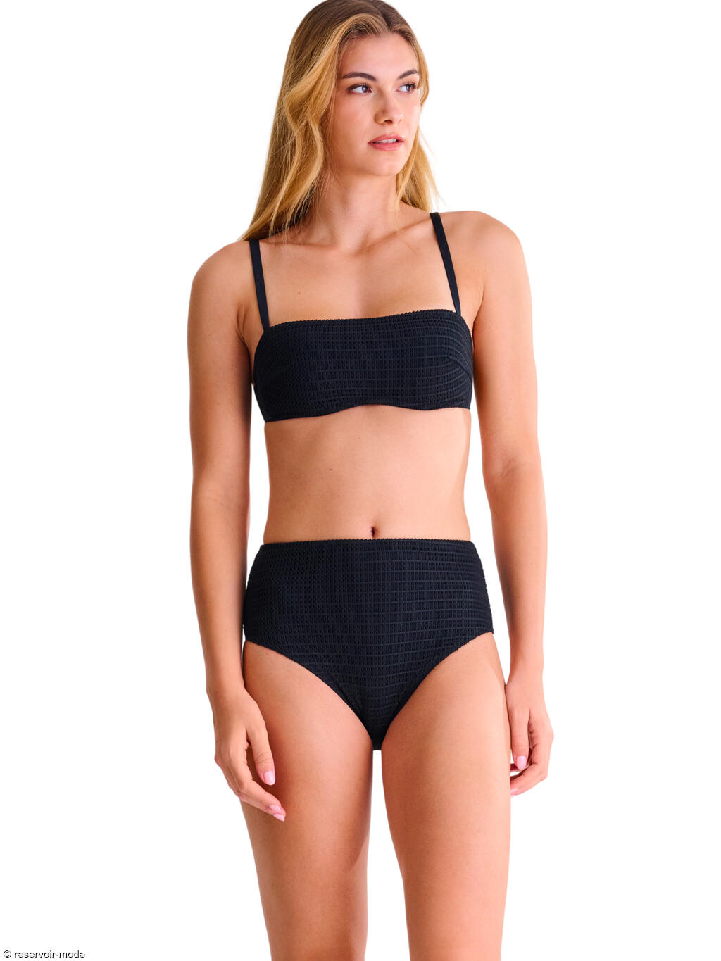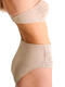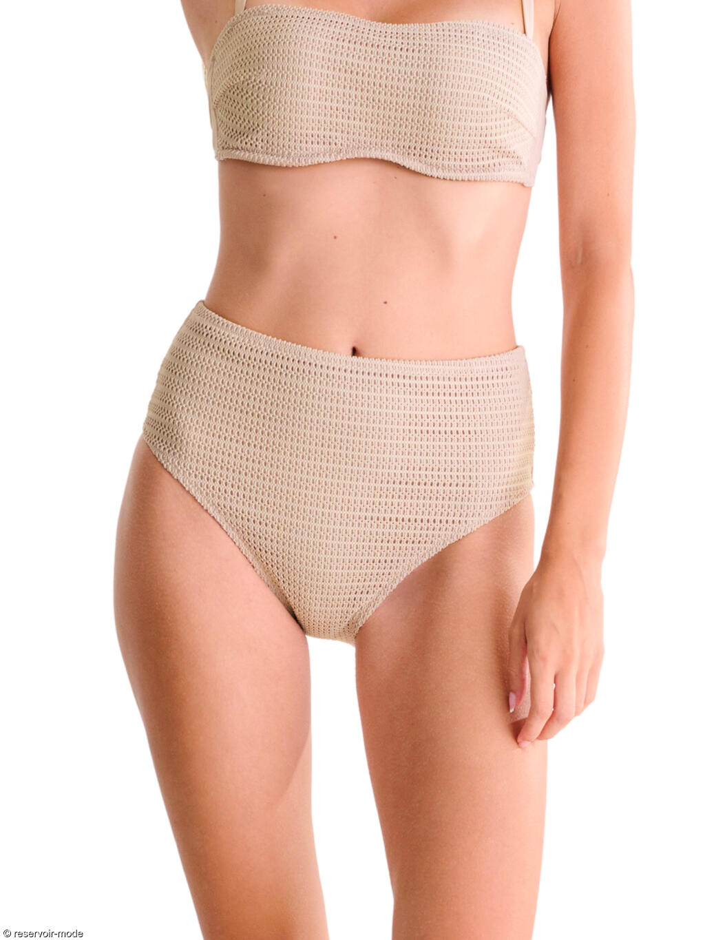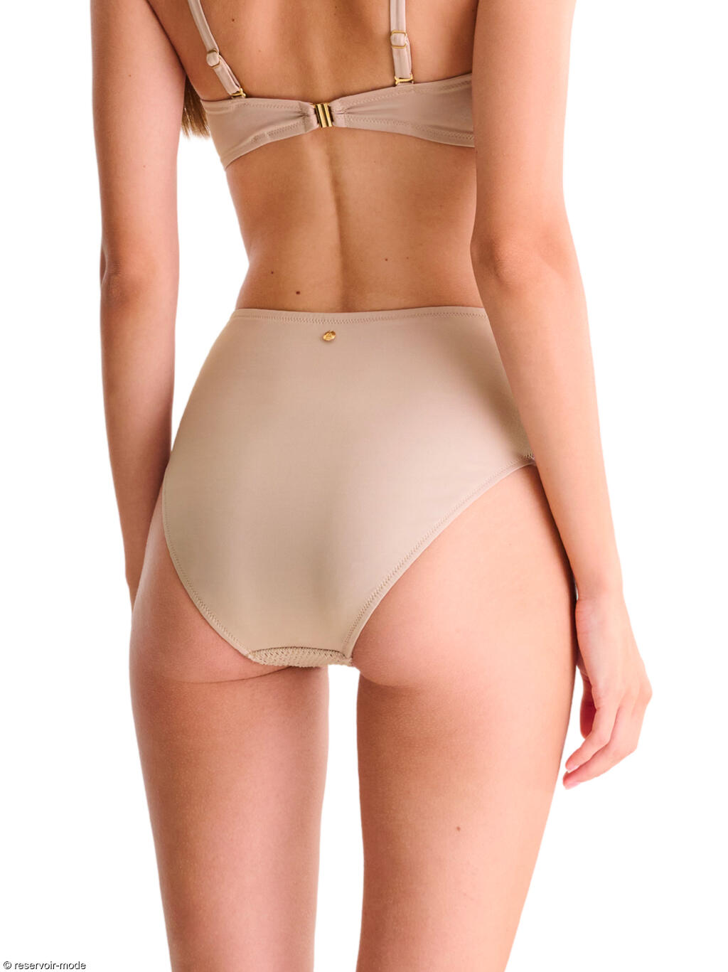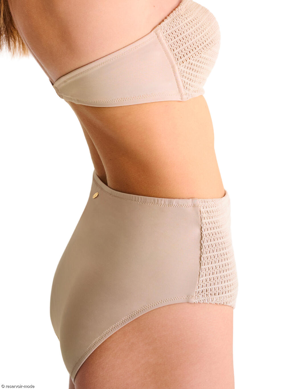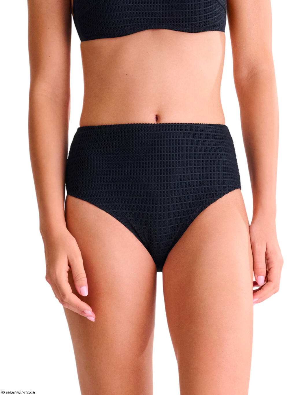 Slip coupé haut à la taille, en matière texturée et maillé à l'avant, lisse à l'arrière. La coupe haute des jambes allonge visuellement la silhouette.