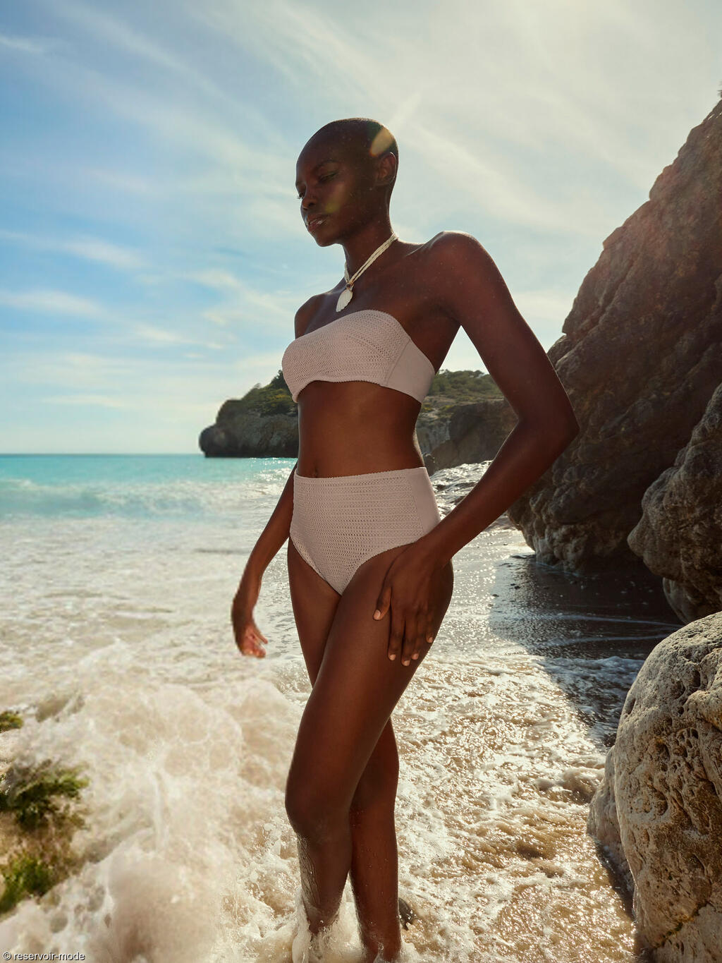 Cette collection, déclinée dans des tons intemporels, est fabriquée à partir de matériaux recyclés afin de mettre l'accent sur la durabilité. La matière de base est une maille qui rappelle le crochet, doublée d'une matière lisse, avec des bonnets et un soutien pour plus de confort. Le tissu lisse à l'arrière des hauts et le dos plus fonctionnel des bas garantissent un ajustement parfait. Les détails décoratifs en forme de coquillage ajoutent une touche naturelle et minimaliste à chaque modèle. Les coupes sont épurées et adaptées à différentes morphologies, ce qui rend les maillots de bain adaptés à toutes les générations et à toutes les silhouettes. La collection propose une variété de styles qui offrent souplesse et confort, maintien et look naturel qui respecte le corps féminin et sa beauté. Elle célèbre le lien avec la nature et met en valeur la beauté authentique qui découle de la simplicité et des formes naturelles.