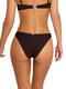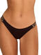 Bas de bikini de coupe slip taille basse dans un design bikini échancré avec côtés fins élastiqués. Sur les côtés, le tissu est agrémenté de bandes décoratives présentant un motif géométrique ethnique. Ce galon décoratif entrelace des sequins aux nuances de doré, de noir et de marron, créant un contraste luxueux avec le tissu uni. Petit logo dans le dos.
