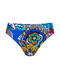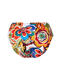 Slip simple et léger de coupe classique à taille haute, dans une matière lisse, imprimée d'un motif multicolore éclatant. Hauteur environ 26cm. Le coloris rouge est doublé à l'avant et à l'arrière. Le coloris bleu est doublé uniquement à l'avant.