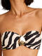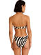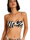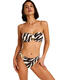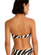 Haut de bikini de forme bandeau avec des bonnets sans armatures ni rembourrage, décorés au centre d'un bijou doré très chic qui complète le look. Il est confectionné dans un tissu texturé orné d’un imprimé zébré noir et blanc, qui apporte une touche à la fois sauvage et élégante. Les bretelles réglables sont amovibles pour vous permettre de le porter en bandeau et éviter les traces de bronzage sur les épaules. Agréable à porter, il vous offrira un confort optimal que ce soit sur la plage ou au bord de la piscine. Fermeture par un clip dans le dos.