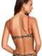 Haut de bikini avec effet enveloppant, armaturé et préformé. Un modèle classique, pratique et très confortable, idéal pour être confortable sur la plage aussi bien qu'à la piscine. Il s'adapte à la capacité naturelle de la poitrine et garantit un soutien maximal. Les fines bretelles sont réglables pour un ajustement parfait, et multipositions : elles peuvent être portées de manière classique, ou croisées dans le dos. Elles sont doublées à l'avant et ornées d'un petit détail décoratif doré. Fermeture par un clip dans le dos.