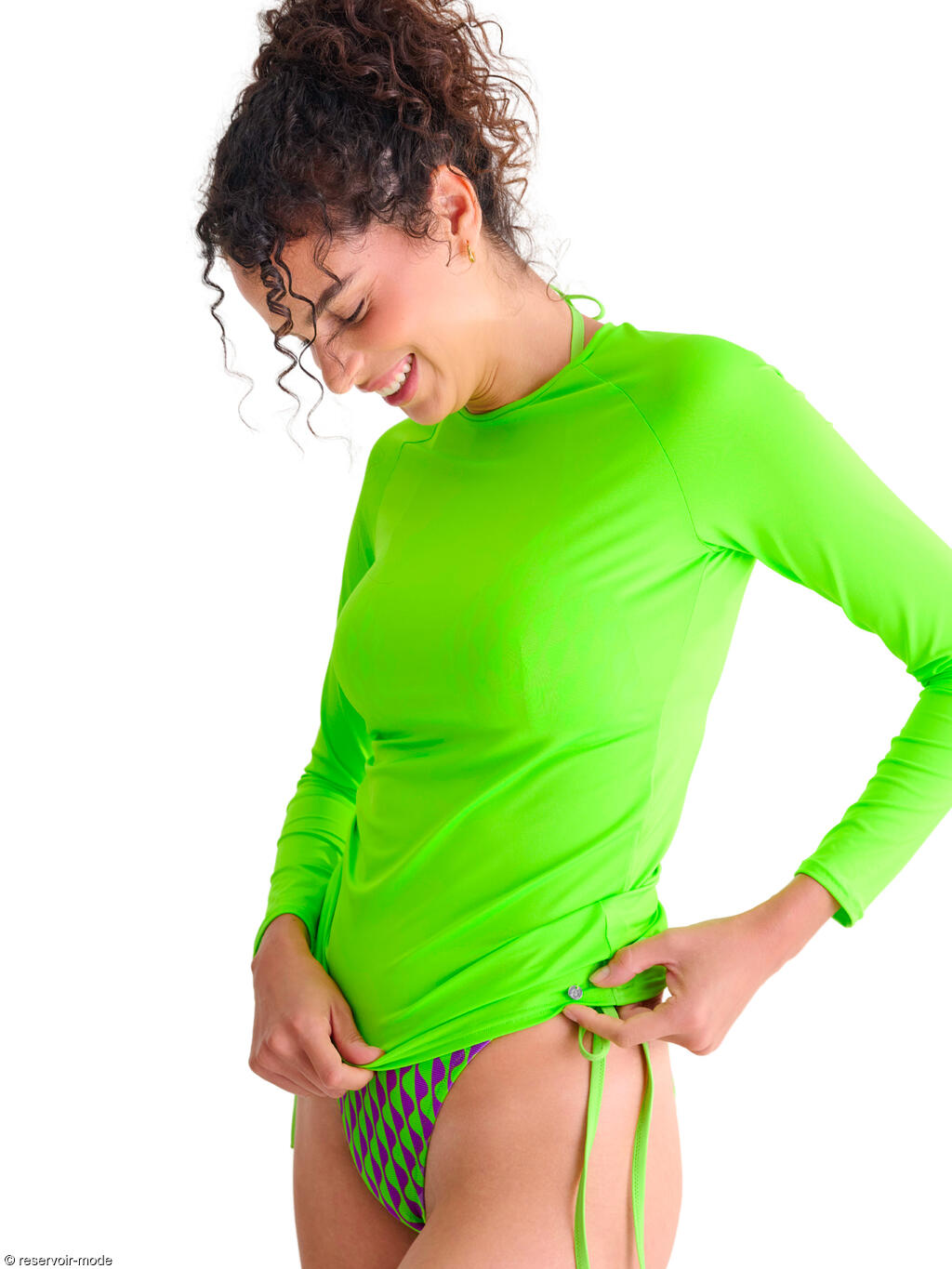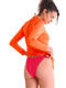 Découvrez cette collection dynamique qui allie le charme rétro des couleurs vives et la fonctionnalité pour un été actif ! Déclinée en deux combinaisons de couleurs énergiques sur un tissu côtelé, l'une des combinaisons de couleurs est un orange-rose chaud et l'autre est un vert-violet fluorescent audacieux. Que vous recherchiez le maillot de bain idéal pour bronzer ou pour être active sur la plage, cette collection sera votre choix idéal pour l'été !