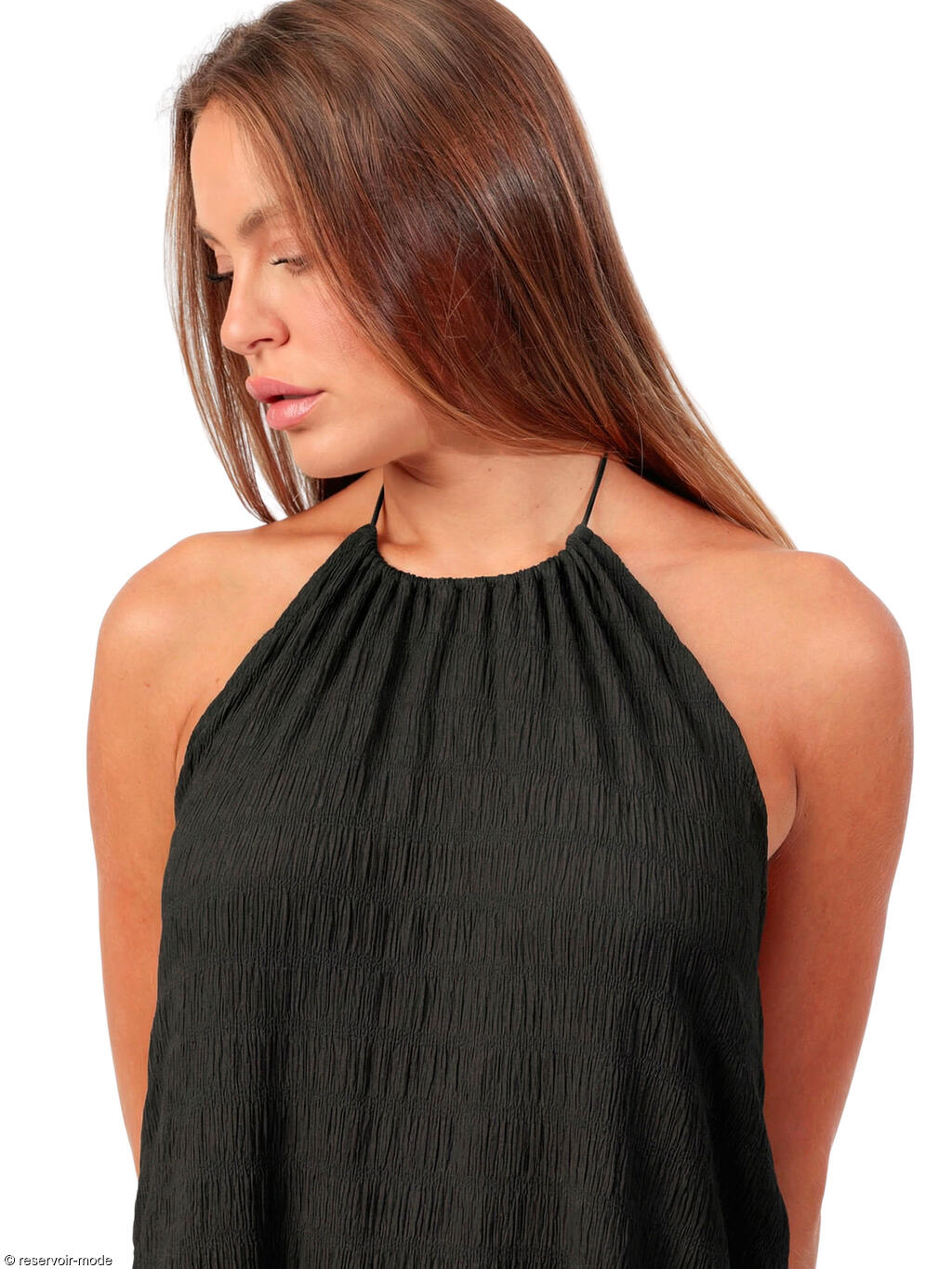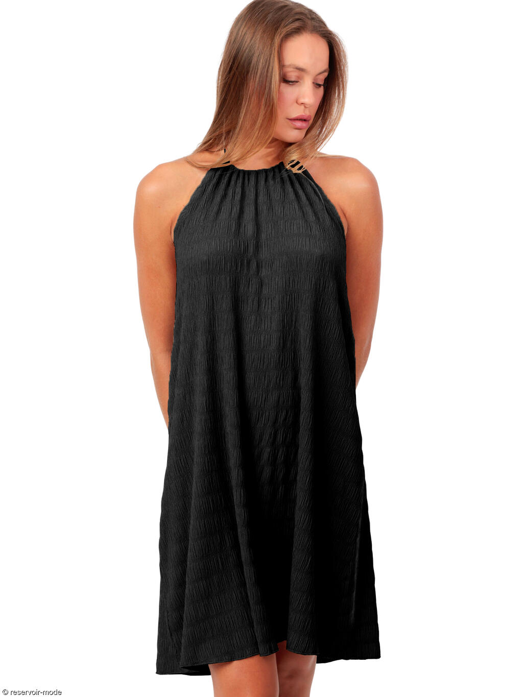 Légèreté et élégance naturelle se combinent parfaitement dans cette robe estivale. Elle est confectionnée dans un tissu texturé, légèrement plissé, qui crée un joli jeu de matière tout en apportant confort et fluidité au mouvement. La coupe est ample et aérienne, sans contrainte, permettant à la robe de tomber avec grâce autour du corps. Le haut se distingue par une encolure froncée qui met subtilement en valeur les épaules et le haut du dos. Le dos nu, délicatement dégagé, accentue la féminité et la fraîcheur du modèle. La robe se noue derrière la nuque grâce à de fines attaches, ajoutant une touche romantique et sensuelle tout en permettant un ajustement personnalisé. La longueur, arrivant juste au-dessus du genou, offre un équilibre parfait entre allure décontractée et élégance discrète. Idéale à porter seule pour une journée à la plage, ou accessoirisée pour une soirée d’été, cette robe est une pièce polyvalente et intemporelle, qui respire la liberté, la douceur et la simplicité chic.