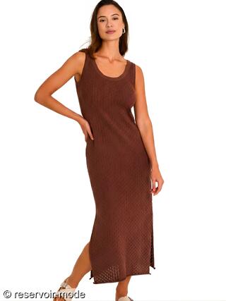 Cette robe d'été présente un style minimaliste et texturé, idéal pour une allure décontractée mais soignée. La coupe longue, droite et fluide, suit les lignes du corps sans être moulante. Sans manches, elle possède une encolure arrondie avec une finition en bord-côte légèrement plus lisse que le reste du vêtement. Des fentes latérales au niveau de l'ourlet facilitent la marche et apporte de la légèreté visuelle. Entièrement en coton, le tissu est travaillé dans un point de tricot texturé type maille nid d'abeille, qui donne du relief et de l'épaisseur à la matière tout en restant respirante. L'ourlet inférieur présente une bande ajourée discrète, ajoutant une petite touche de détail artisanal. Cette robe incarne un style sobre et naturel. Elle se portera aussi bien en ville qu'en bord de mer.