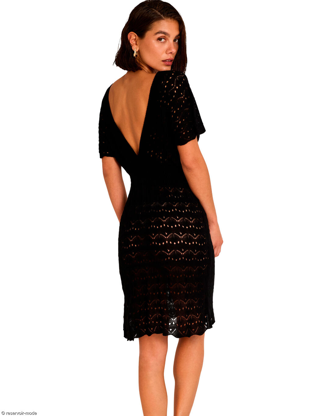 Allure glamour et sophistiquée pour cette robe de plage réalisée dans une maille ajourée complexe. Le motif se compose de successions de chevrons et de petits points de dentelle, créant un jeu de transparence élégant qui laisse deviner le maillot de bain en dessous. Entièrement en viscose, cette matière lui confère un tombé lourd, fluide et une douceur soyeuse sur la peau. La robe présente un décolleté plongeant à l'avant comme à l'arrière, créant une silhouette très féminine et audacieuse. Une large bande de maille resserrée souligne la taille, structurant la silhouette pour un effet sablier. Les manches sont courtes, amples et intégrées, offrant une grande liberté de mouvement et un style aérien. Sa coupe droite s'arrête juste au-dessus du genou, avec une finition festonnée sur le bas. La maille de viscose apporte un relief visuel riche et une brillance subtile propre à cette fibre. Cette robe polyvalente sera parfait à enfiler sur son maillot de bain à la plage. Accessoirisée avec des sandales dorées et de grandes créoles, elle se transforme instantanément en tenue de soirée estivale.