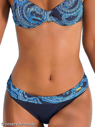 Bas de maillot de bain de coupe classique, à taille basse, avec une ceinture doublée le long de la taille d'un magnifique motif cachemire. Confortable à porter grâce à une microfibre douce très agréable sur la peau.