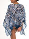 Coloris bleu à motifs zébrés tendance, tenue fluide et asymétrique pour un look parfait sur la plage.