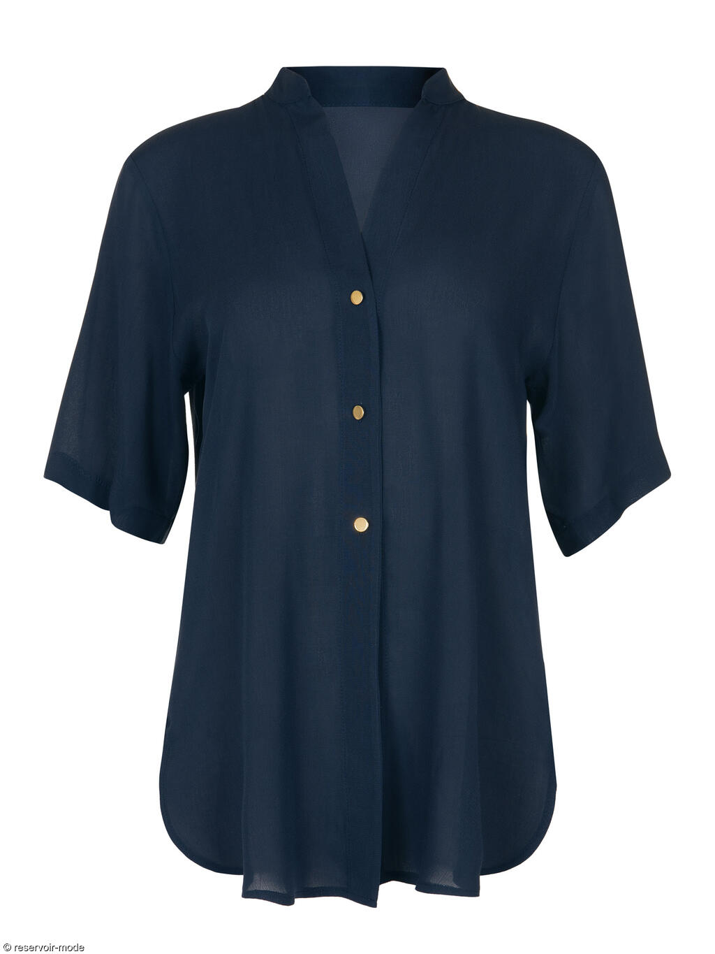 Tunique de coupe chemise large à manches courtes. Elle est conçue pour la plage ou pour être porté tous les jours en combinaison avec différents pantalons. Patte boutonnée sur le devant jusqu'à mi-longueur. Fabriquée en viscose légère, douce et fluide, elle tombe gracieusement sur votre corps. Longueur environ 70 cm.