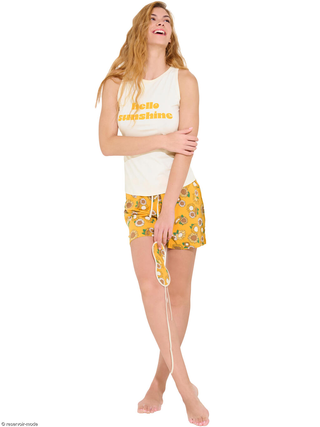Gamme de pyjamas rafraîchissante et vibrante, avec un motif rayé coloré dans une option et de magnifiques tournesols dans l'autre. Ces pyjamas sont parfaits pour les chaudes nuits d'été, lorsque vous souhaitez dormir confortablement tout en restant élégante. Chaque pyjama a son propre charme. Les pyjamas à rayures colorées donnent une impression de fraîcheur et de dynamisme, tandis que les pyjamas à motifs de tournesols apportent un sentiment de détente et de joie. L'imprimé « Hello sunshine » sur le devant du pyjama ajoute une touche supplémentaire de gaieté et d'énergie positive. La matière est un tricot de coton léger et respirant, avec de l'élasthanne pour un meilleur ajustement.
