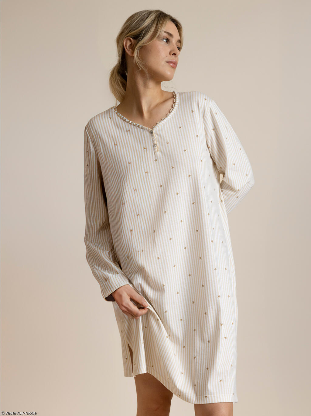 Chemise de nuit manches longues col rond Stripes