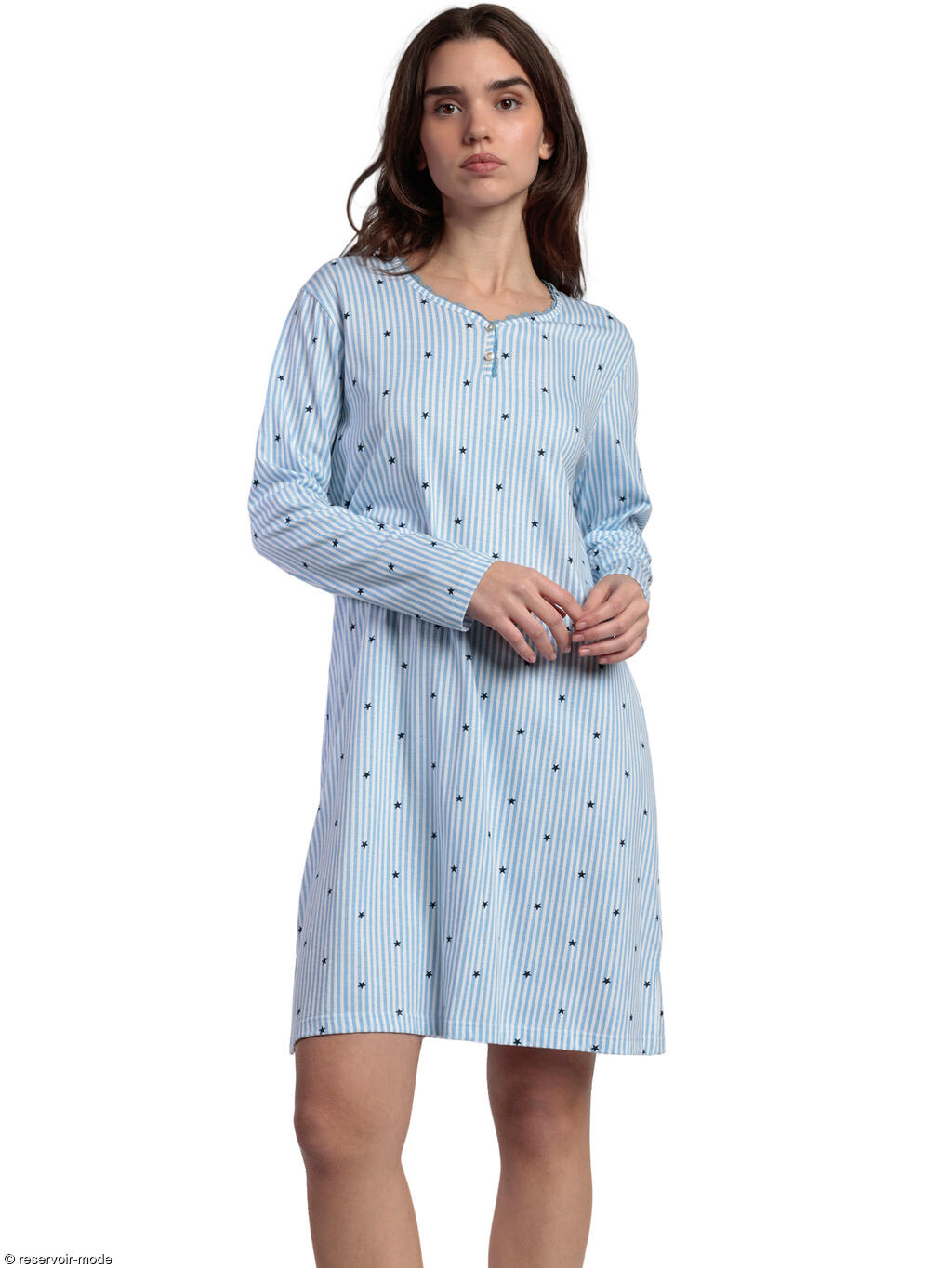 Chemise de nuit manches longues col rond Stripes And Stars de la marque Admas.