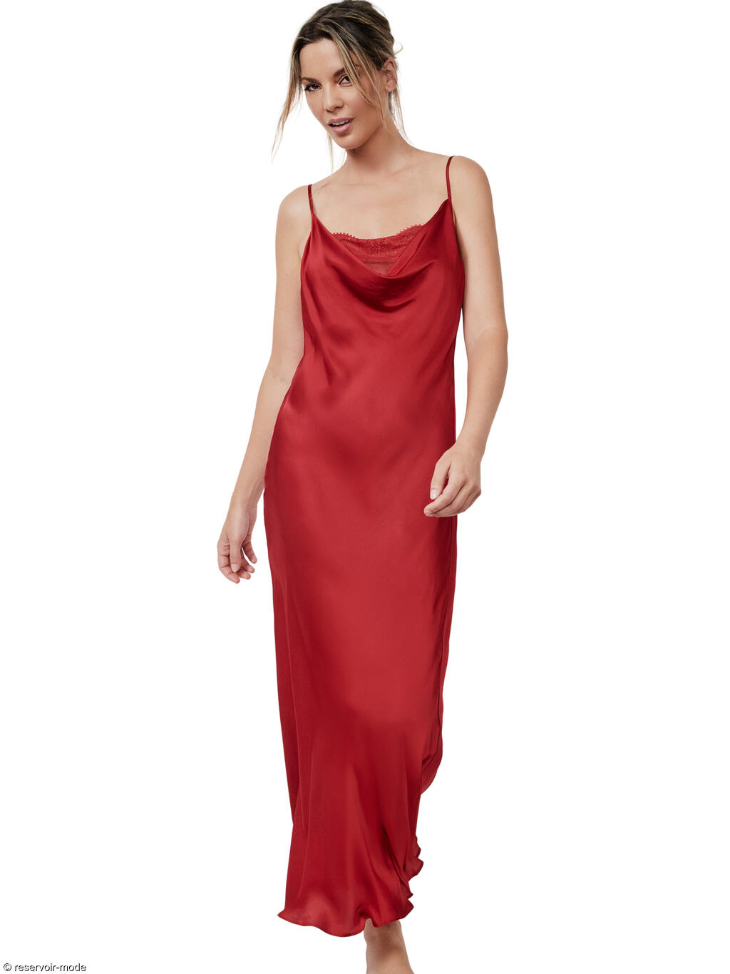 Cette nuisette allie parfaitement élégance et sophistication. Conçue avec un tissu viscose luxueux, elle offre une sensation de légèreté et de fluidité, épousant délicatement les courbes de votre silhouette. Le décolleté décoré de fine dentelle à motifs floraux et arabesques ajoute une touche de glamour, créant un effet drapé qui attire le regard. Sa coupe longue et fluide assure un confort optimal tout en offrant une allure raffinée. Le dos nu en V ajoute une dimension audacieuse, tout en restant élégante et raffinée. Finition du décolleté et du dos par un fin galon ornemental à picots, ajoutant une touche délicate. Les fines bretelles sont réglables pour un ajustement parfait.