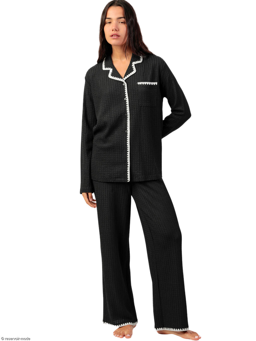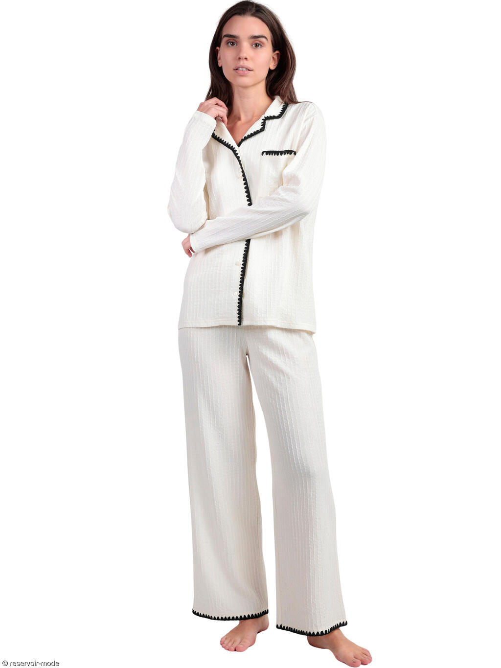 ADMAS FEMME - Ref.63615AD - Pyjama pantalon chemise manches longues Stitching