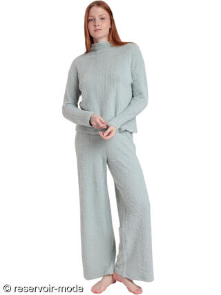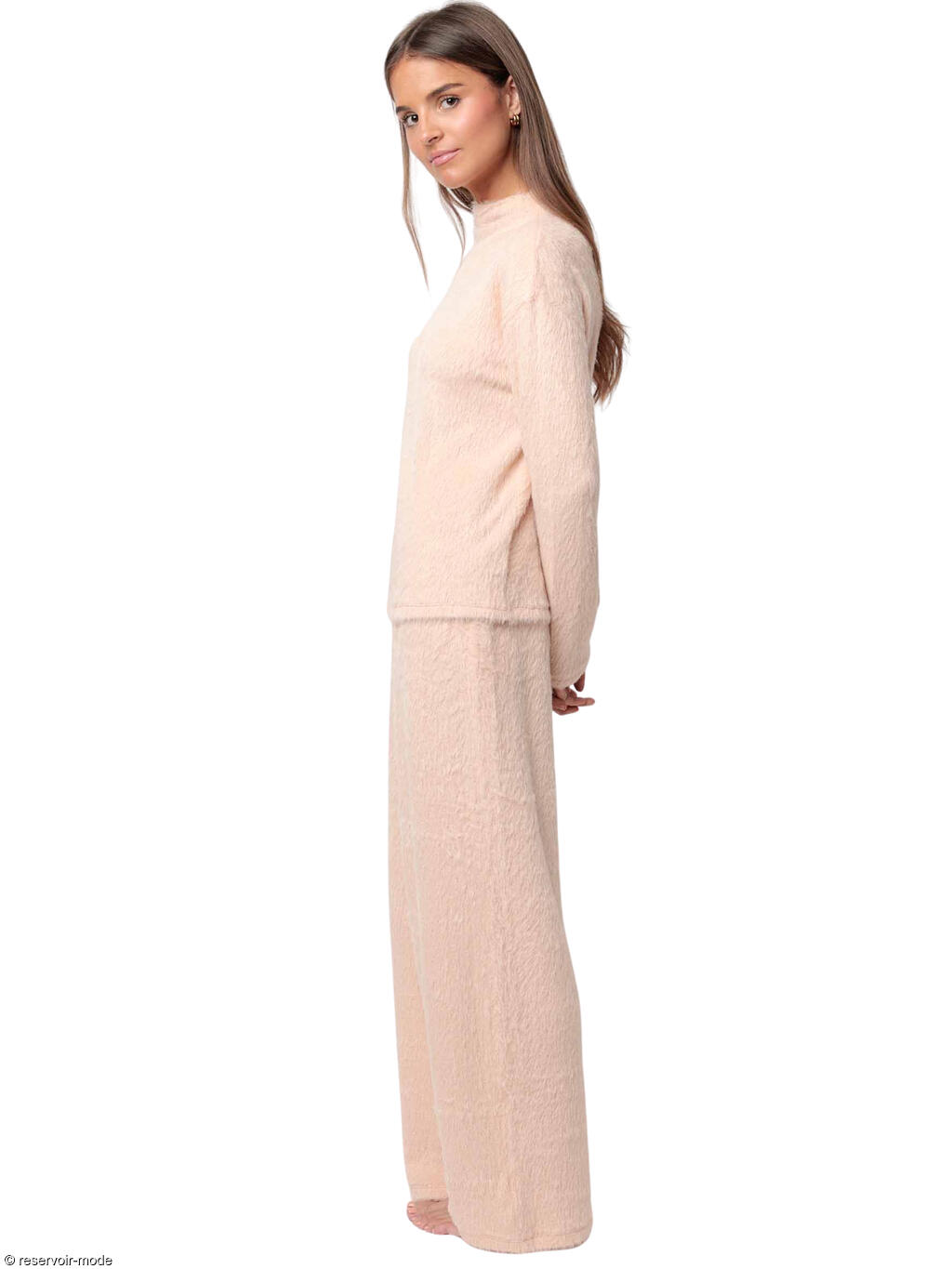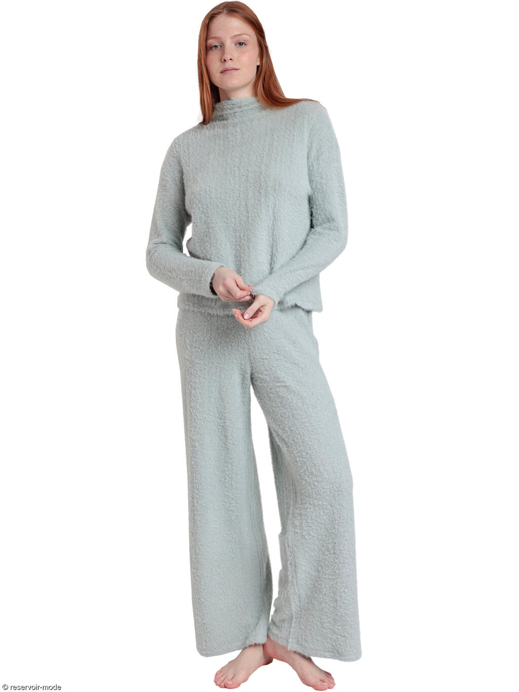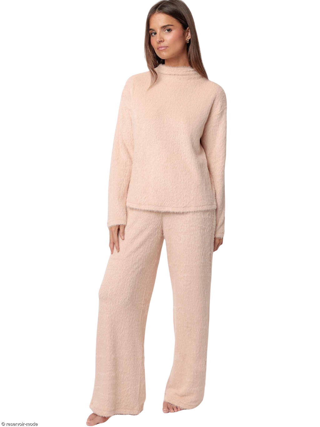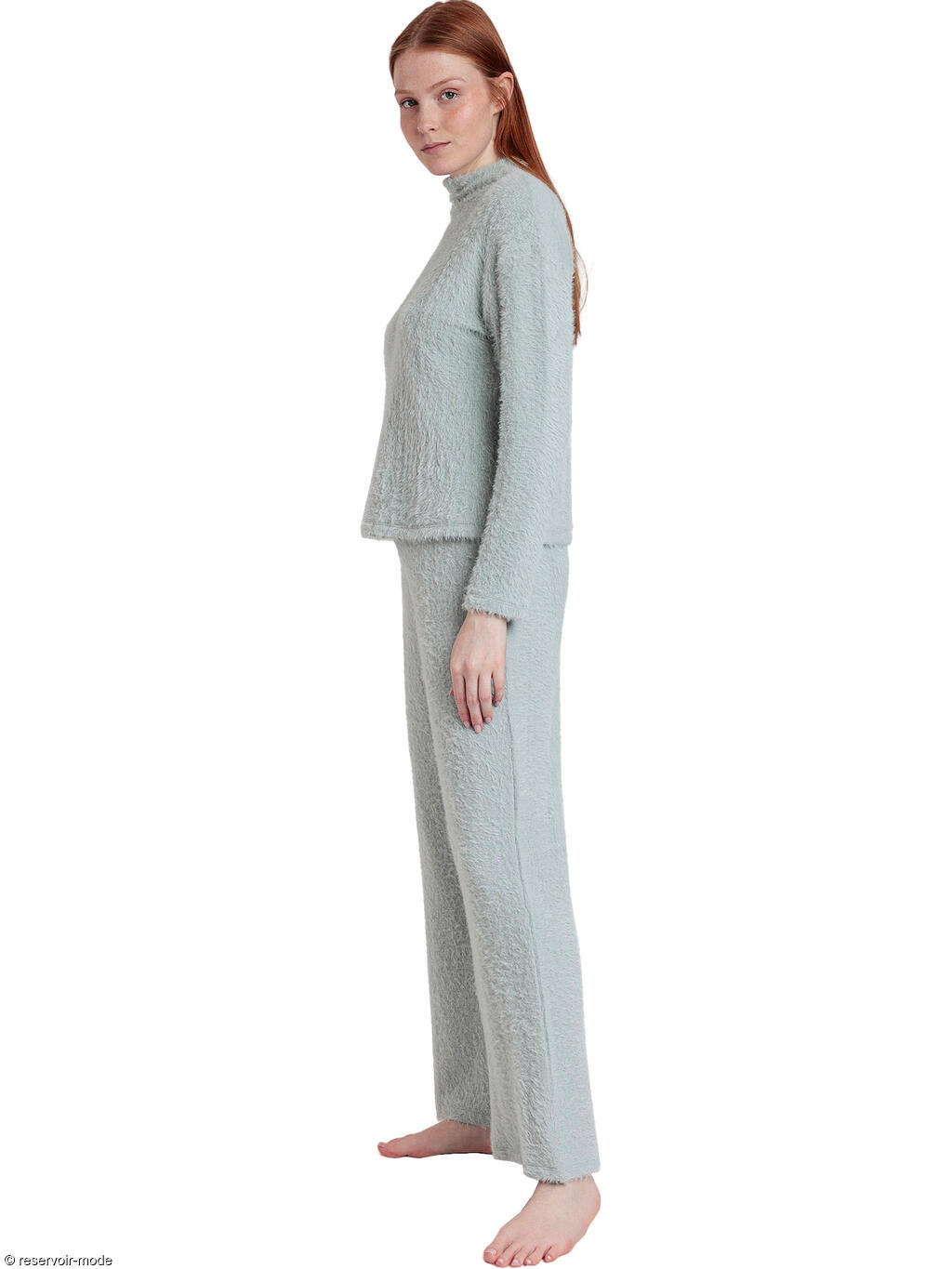 Cette tenue allie confort maximal et élégance minimaliste, parfait pour les journées cocooning à la maison. Cet ensemble pyjama deux pièces se compose d'un haut manches longues et d'un pantalon long. Le haut à col montant a des manches longues ajustées aux poignets. Coupe droite et légèrement ample, pour une liberté de mouvement. La pantalon a des jambes larges style palazzo pour un confort optimal. Le tissu à effet peluche est très doux et moelleux, offrant une chaleur enveloppante. Très agréable au toucher, effet cocon garanti. Idéal pour les soirées d’hiver ou les journées à la maison, ce pyjama à l’aspect chic et douillet, avec une allure loungewear luxueuse, permet même de le porter comme tenue d'intérieur élégante. Livré dans une boîte-coffret Admas.