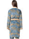 Robe de chambre ample à l’allure élégante et décontractée avec un motif floral dans des tons beige doré sur fond bleu doux. Des fleurs et feuillages tropicaux couvrent l’ensemble du tissu, créant un style à la fois naturel et raffiné. Les bords de la robe de chambre, les poignets et la ceinture sont faits dans un tissu contrastant de couleur beige clair uni, ce qui apporte un bel équilibre visuel et une touche de sophistication. Tissu spécial velours double face, ultra doux, fluide et confortable. Elle sera parfaite pour des moments de détente à la maison tout en restant chic. Livré dans une boîte-coffret Admas Luxury.