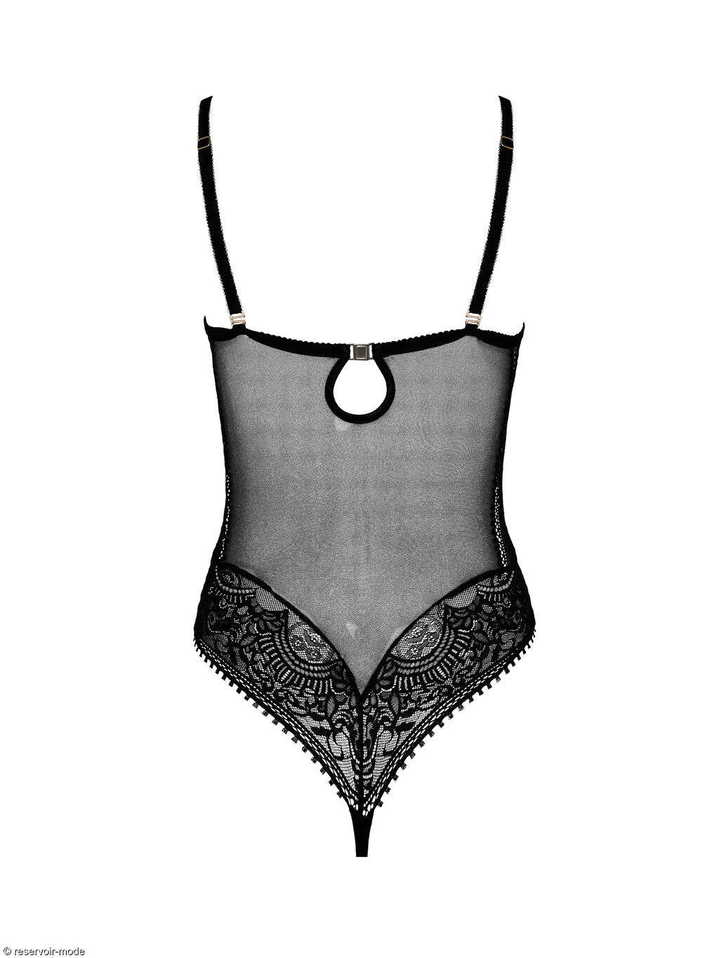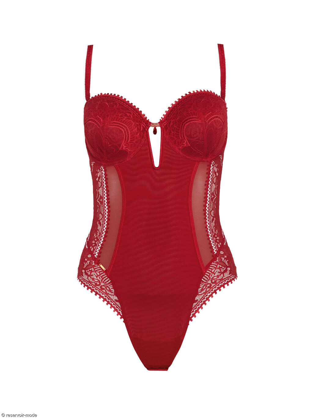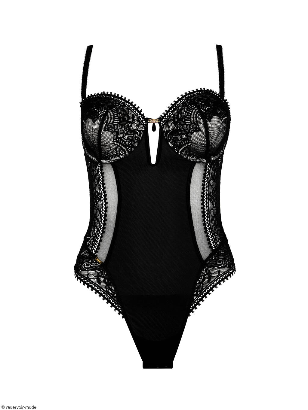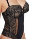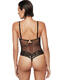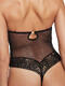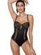 Body qui est l'image de la fusion parfaite entre audace et délicatesse, entre dentelle et transparence. Ses bonnets intégrés, armaturés et préformés, offrent un joli décolleté avec une fine dentelle à motifs floraux et arabesques. Conçu pour laisser une empreinte, il reflète la magie des soirées où l'élégance et la sensualité sont à l'honneur. Au centre des bonnets, un petit bijou brillant ajoute une touche séduisante. A l'avant, une doublure en tulle de contrôle permet un galbe délicat du ventre et un lissage de la silhouette. La coupe string à l'arrière mettra en valeur vos fessiers. Finition des bordures du décolleté et dans le dos par un fin galon ornemental à picots, ajoutant une touche délicate. Les fines bretelles sont réglables pour un ajustement parfait, et amovibles, ce qui vous permet de le porter en format bandeau bustier et de l'adapter à vos tenues. Fermeture par agrafes à l'entrejambe, et petit crochet dans le dos.