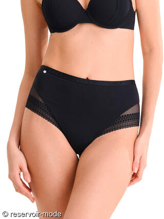 Brésilien taille haute confortable avec un design qui mettra vos fessiers en valeur. Les côtés et l'arrière sont ornés d'une dentelle luxueuse. Large élastique à la taille. Gousset en coton pour un confort intime garanti.