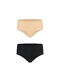 Chaque pack contient 1 slip beige et 1 slip noir.