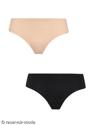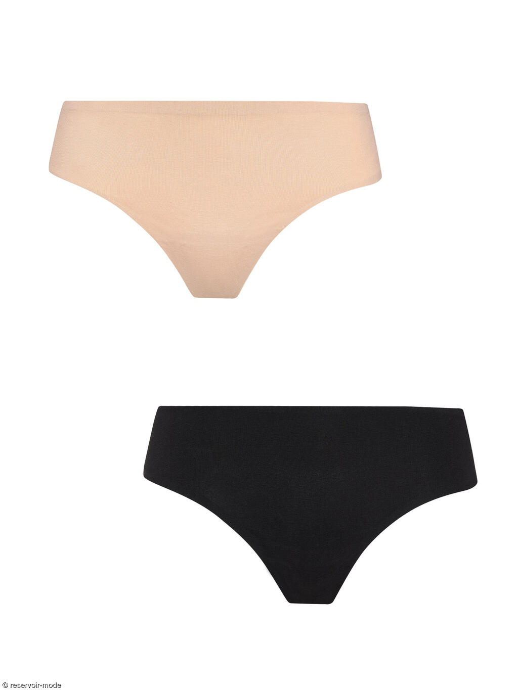 Pack x2 strings Cotton de la marque Bye Bra. Chaque pack contient 1 string beige et 1 string noir. Élégant et confortable, ces strings invisibles offrent une sensation de [voir la suite]