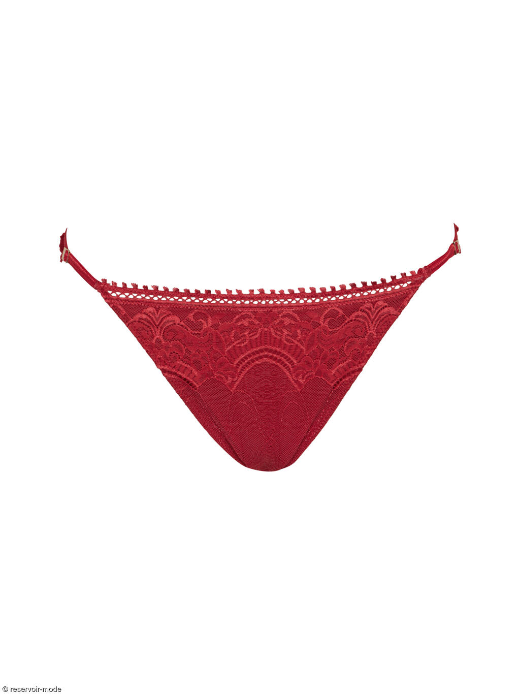 String collection AURUM de la marque Selmark.  String en dentelle fine à motifs floraux et arabesques, ajustable sur les côtés. La taille basse est ornée dans le dos [voir la suite]