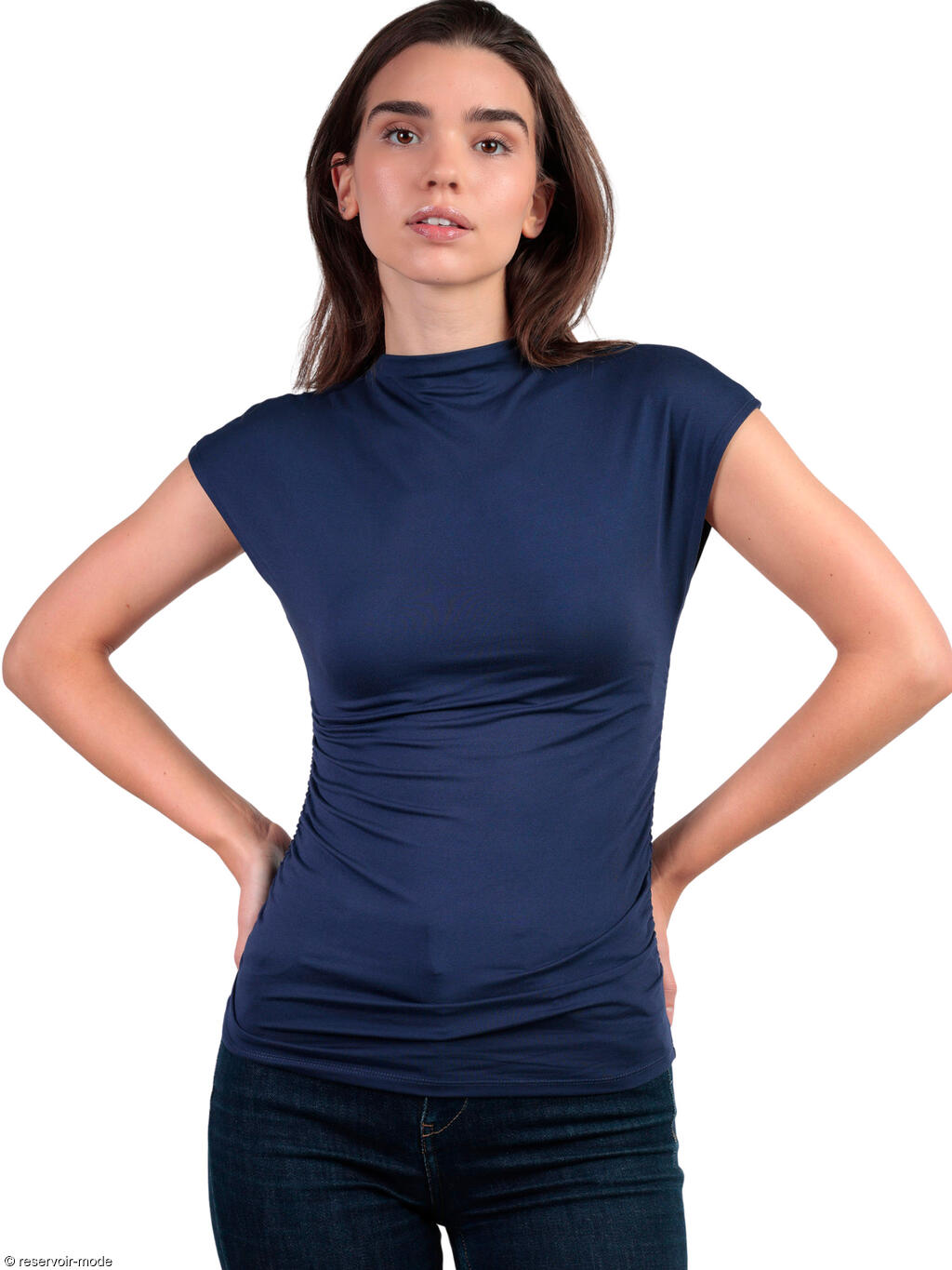 T-shirt à manches courtes col montant Frunces de la marque Admas. T-shirt dans un design ajusté qui épouse les formes du corps. Sa coupe et ses détails froncés sur [voir la suite]