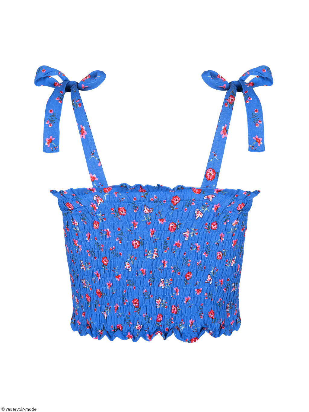 Top smocké court et confortable qui se combine parfaitement avec une jupe ou d'autres vêtements. La couture élastique sur toute la longueur assure un bon ajustement et lui donne un look rétro. Les bretelles sont nouées sur les épaules, ce qui crée un beau détail moderne. Hauteur environ 40 cm.