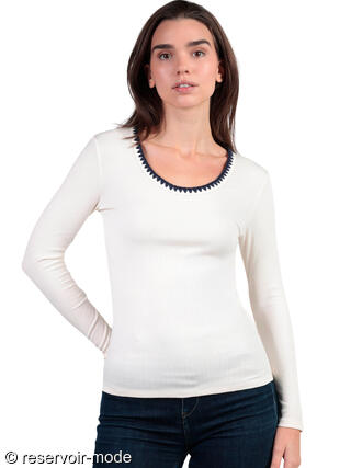 ADMAS FEMME - Ref.43667AD - Top manches longues col rond Canale Contraste Admas