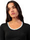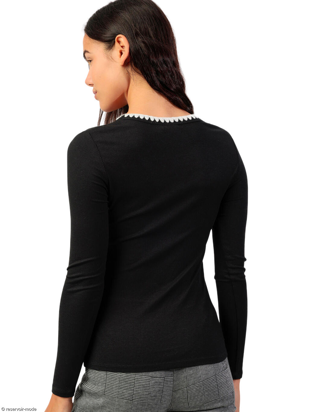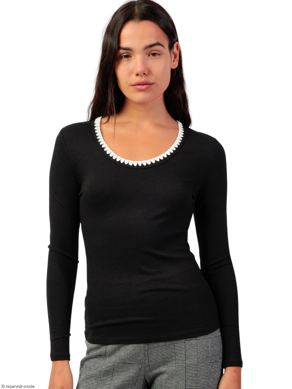 Top en maille côtelée, encolure ronde et manches longues, en tissu viscose mélangé léger et agréable à porter. Le col est souligné par une brodure contrastée en détails brodées. Ce top sera parfait à enfiler en toutes occasions. Fabriqué dans un tissu doux au toucher pour un confort optimal tout au long de la journée. Un intemporel indipensable à avoir dans votre armoire.