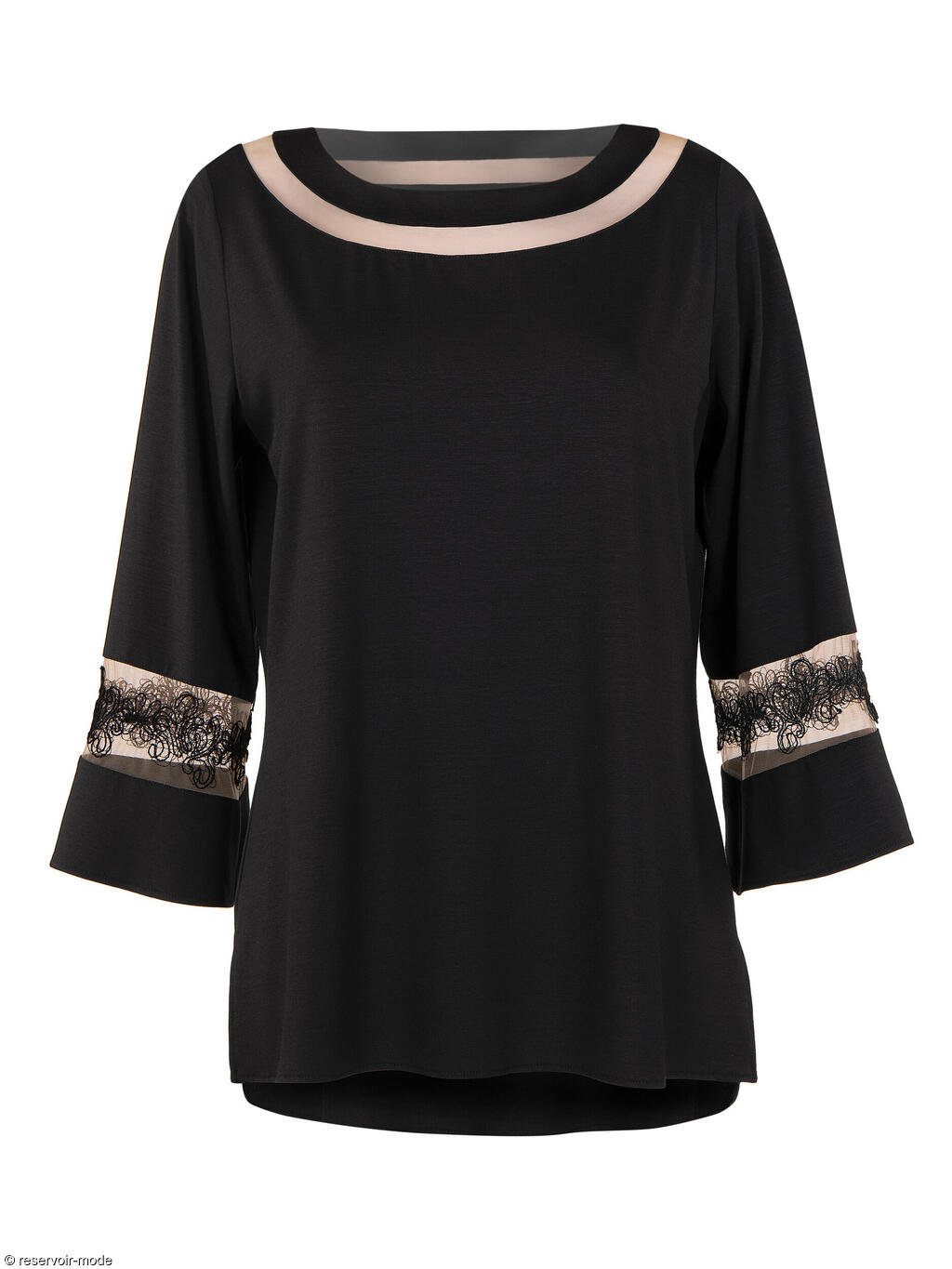 Encolure ronde, effet tatouage et broderie. Un modèle élégant qui allie luxe et confort. Ce haut à manches longues est légèrement plus long, ample et avec des manches larges. Les inserts en tulle couleur peau autour du cou attirent l'oeil, tandis que les broderies sur les manches apportent la touche finale. Fabriqué à partir de viscose, vous vous sentirez bien tous les jours.