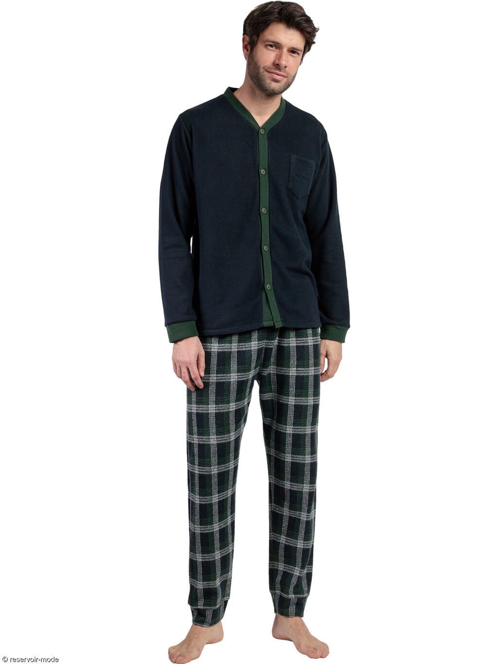ADMAS HOMME - Ref.63783AD - Pyjama pantalon chemise manches longues Smeraldo