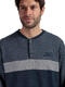 Ensemble deux pièces confortable et moderne, conçu pour offrir chaleur et style à la maison. Son tissu en coton mélangé offre chaleur et douceur tout en restant respirant. Le haut, de coupe classique à manches longues, a un col rond avec une patte de boutonnage à trois boutons, pratique et élégant. La partie supérieure présente un petit motif géométrique discret sur toute la surface, et un petit logo discret brodé sur le buste. Une bande horizontale grise vient contraster au niveau de la poitrine, puis la partie inférieure unie apporte une touche sobre et chic. Le pantalon de coupe droite est resserré au niveau des chevilles par des bords-côtes pour un bon maintien. Le même motif discret que sur le haut assure une belle harmonie visuelle. Avec son design structuré et moderne, ce pyjama offre un confort optimal pour la nuit ou les moments de détente à la maison. A la fois chic, pratique et cosy, il est idéal pour les hommes qui veulent rester élégants, même en mode détente. Livré dans une boîte-coffret Admas.