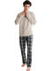 Ensemble de pyjama très confortable en tissu coton mélangé doux et agréable à porter. Il se compose d'un pantalon et d'un haut à manches longues. Le pantalon à carreaux a une coupe droite, une large ceinture élastiquée avec un cordon de réglage et des poches latérales pratiques. Le haut de couleur unie a des manches et un col rond avec une patte de boutonnage sur le devant. Il sera parfait à porter en pyjama pour vos nuits plus fraîches, ou en tenue d'intérieur pour des journées décontractées.