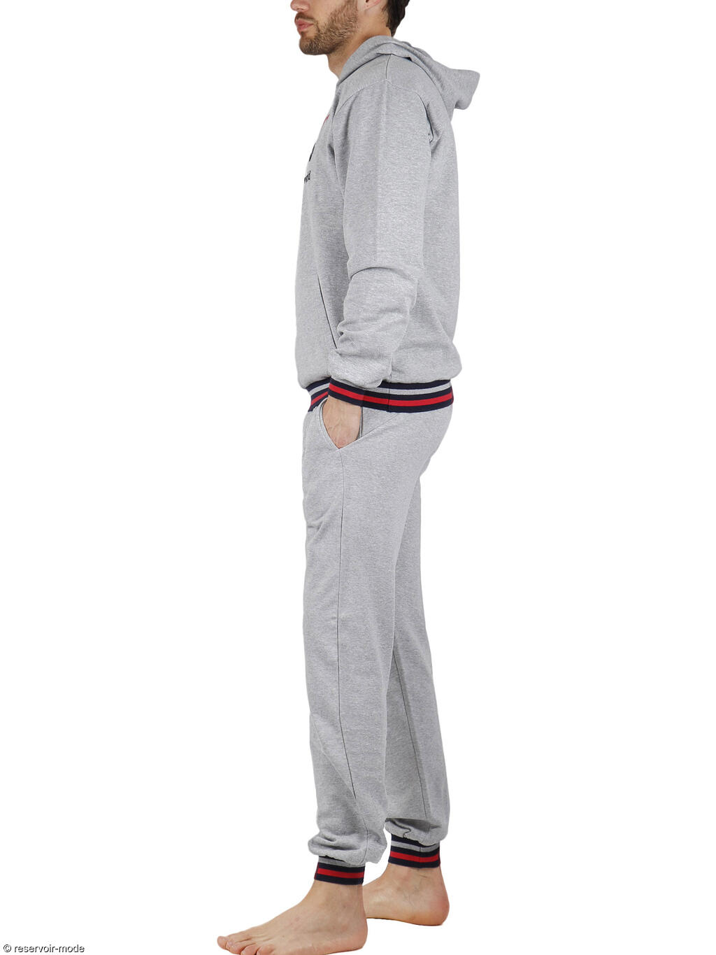 Pour un look à la fois détendu et sportif, cet ensemble pantalon et haut à capuches sera parfait pour vos journées de week-end ou de détente à la maison. Vous pourrez aussi le porter comme pyjama lors de vos nuits froides d'hiver. Il est entièrement en tissu vigoré molletonné ce qui le rend très confortable et très chaud, parfait à porter en hiver. Le pantalon a des poches latérales et est resserré au niveau des chevilles pour un meilleur maintien et un ajustement agréable. Le haut a des manches longues et un col capuche, il est resserré au niveau des poignets, et est orné de détails brodés sur le devant. Il a des bandes de couleurs contrastées au niveau des chevilles, des poignets et en bas du top pour une touche sportive. Tissu doux au toucher et agréable sur la peau. Livré dans une boîte-coffret Admas.