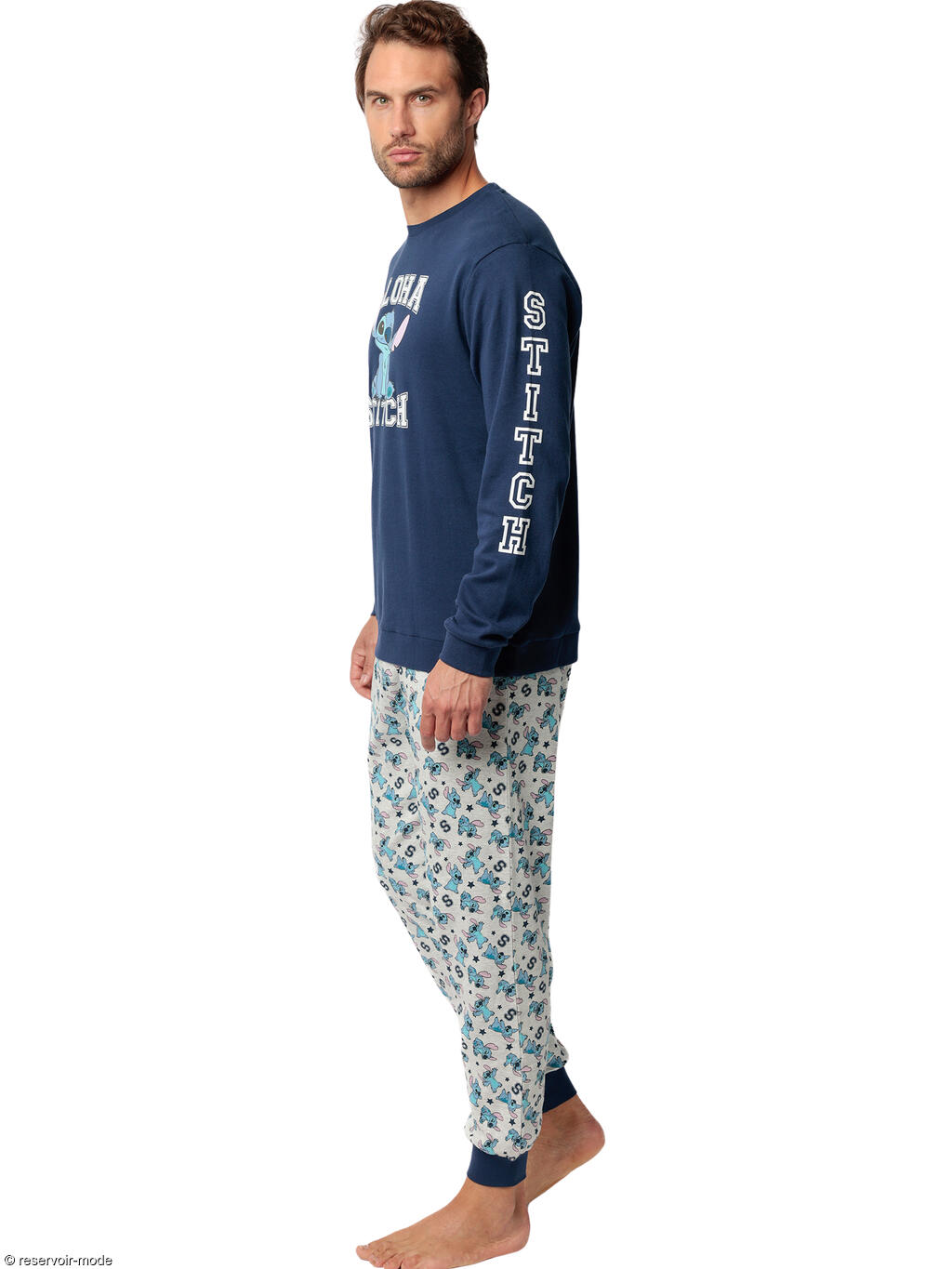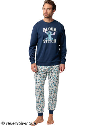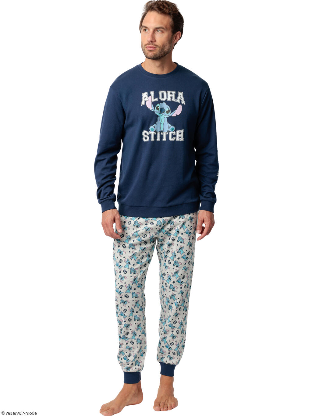 ADMAS HOMME - Ref.63901AD - Pyjama velours pantalon top long Aloha Stitch Disney
