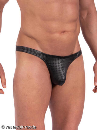 String collection RED2359 de la marque Olaf Benz. Coupe string mini échancrée sur les cuisses. Ceinture plate, taille basse, avec petit logo. Structure pied-de-poule thermofixée [voir la suite]