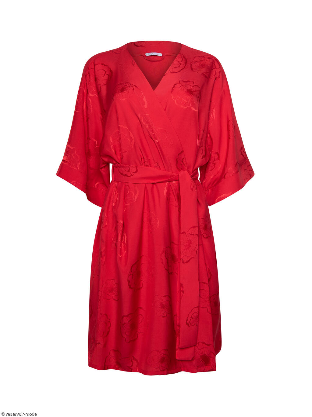 Robe de chambre confortable à coupe ample et manches trois-quarts; une combinaison parfaite d'élégance et de détente. Les manches sont finies par un ourlet, tout comme l'encolure et la patte de boutonnage sur le devant. Ceinture de fermeture. Longueur environ 95 cm.
