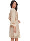 Ce déshabillé incarne une élégance fluide et enveloppante, pensée pour sublimer les moments de détente avec raffinement. Confectionné dans un tissu doux et soyeux, il offre un toucher délicat, une belle légèreté et une souplesse naturelle qui accompagne les mouvements du corps avec aisance. La matière glisse sur la peau, procurant une sensation de confort immédiat et durable. Sa coupe portefeuille se ferme par une ceinture à nouer à la taille, permettant d’ajuster parfaitement le tombé tout en soulignant la silhouette avec élégance. Le décolleté en V apporte une note féminine subtile, équilibrée par des manches trois-quarts amples qui renforcent l’allure fluide et sophistiquée de la pièce. Les finitions en dentelle fine, délicatement placées au bas du déshabillé et aux extrémités des manches, ajoutent une touche de sensualité discrète et de raffinement. Il est idéal pour compléter une tenue de nuit, alliant confort absolu, féminité délicate et élégance intemporelle, parfait pour les instants de bien-être à la maison.