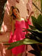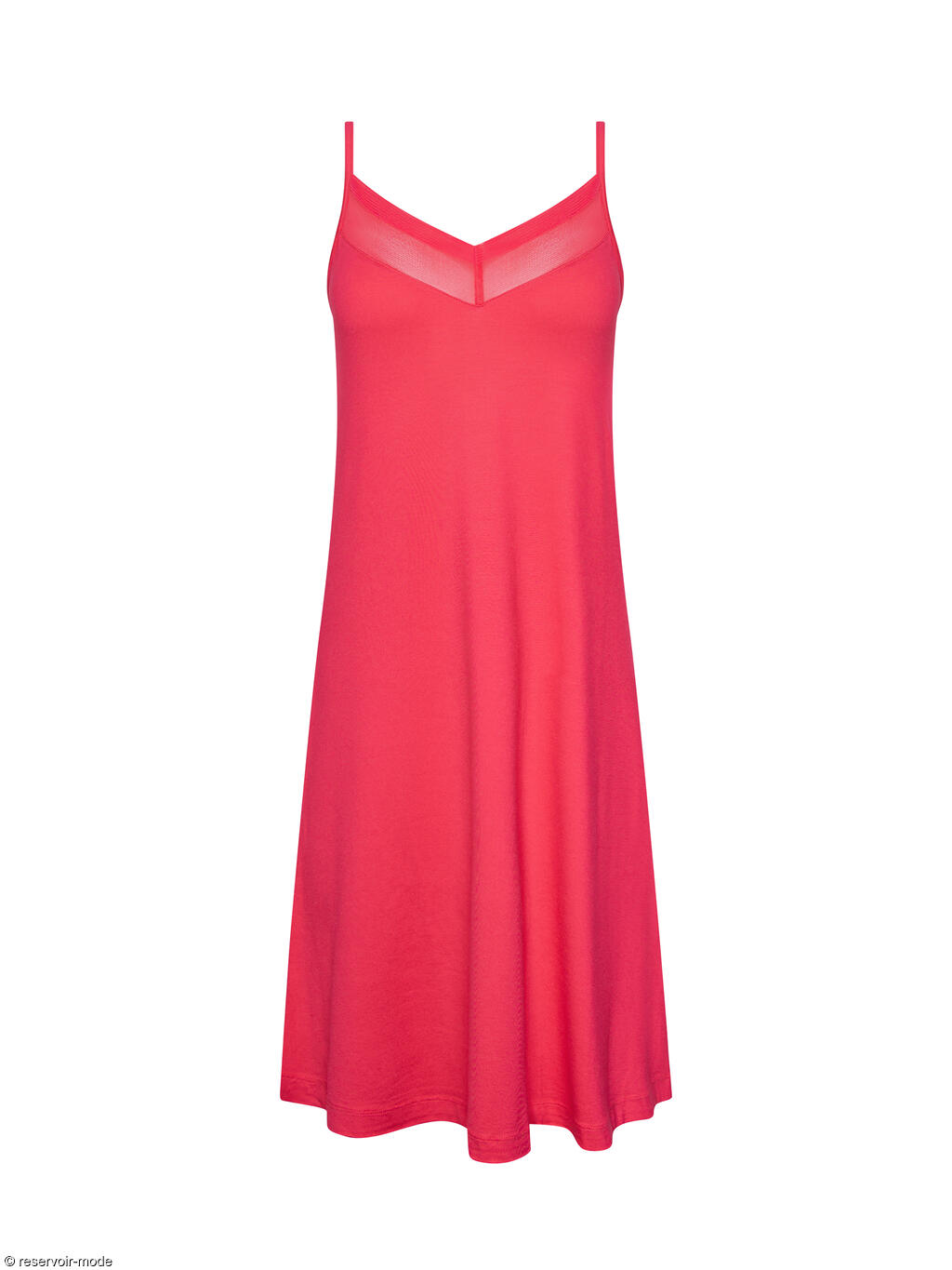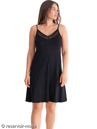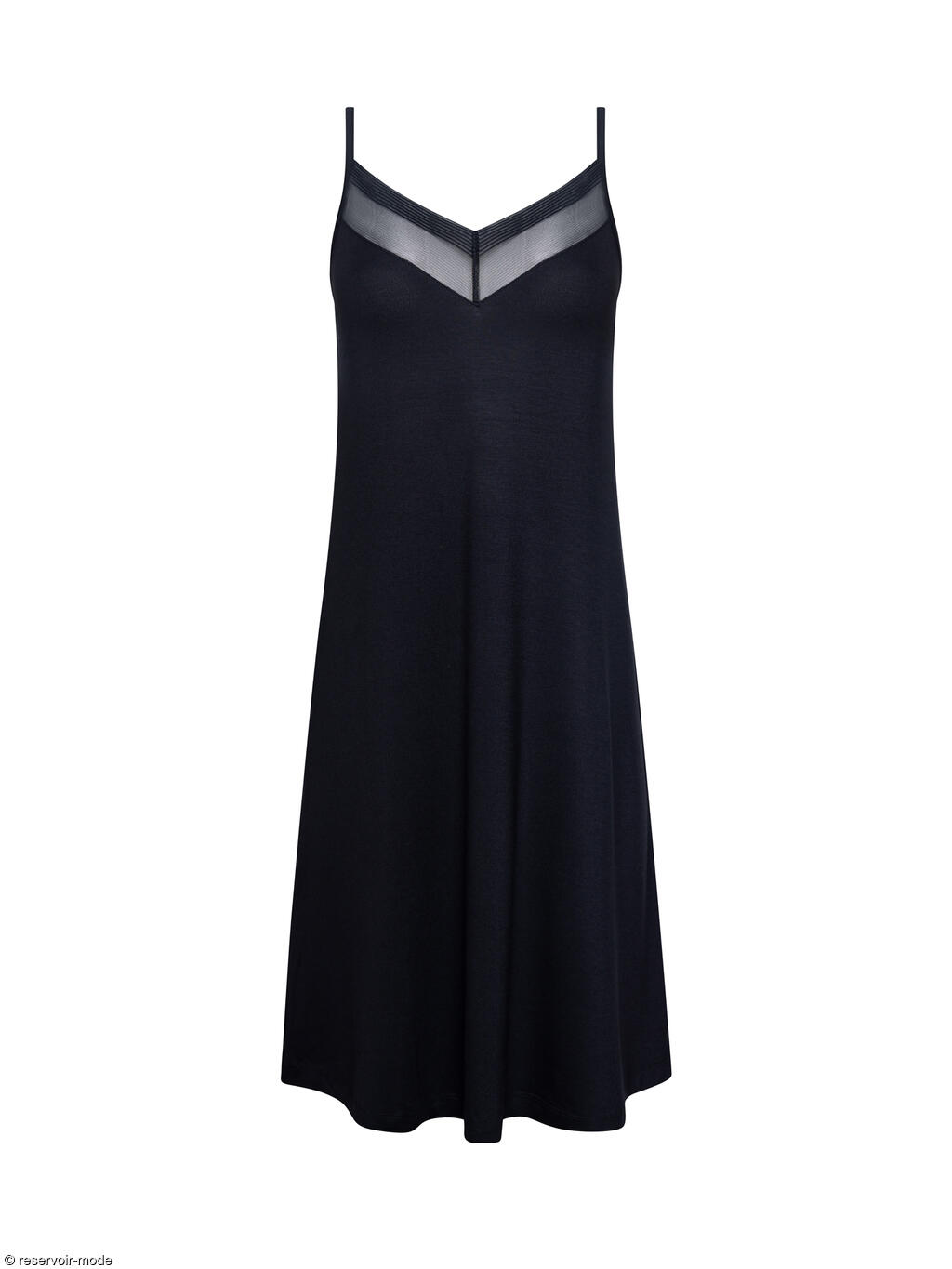 Nuisette avec un col en V et un détail minimaliste au niveau du décolleté. Les fines bretelles fines sont réglables pour un ajustement parfait. Confectionné en maille viscose douce et légère sur la peau. Longueur environ 95 cm.