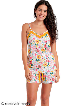 Pyjama short caraco Gold Flowers de la marque Admas.  Ensemble de pyjama composé d’un débardeur léger et d’un short assorti, confectionnés dans un [voir la suite]