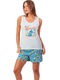 ADMAS WOMAN - Ref.55503AD - Pyjama short t-shirt Hello Summer Santoro bleu Admas Pyjama short t-shirt Hello Summer Santoro bleu 59,95€TTC