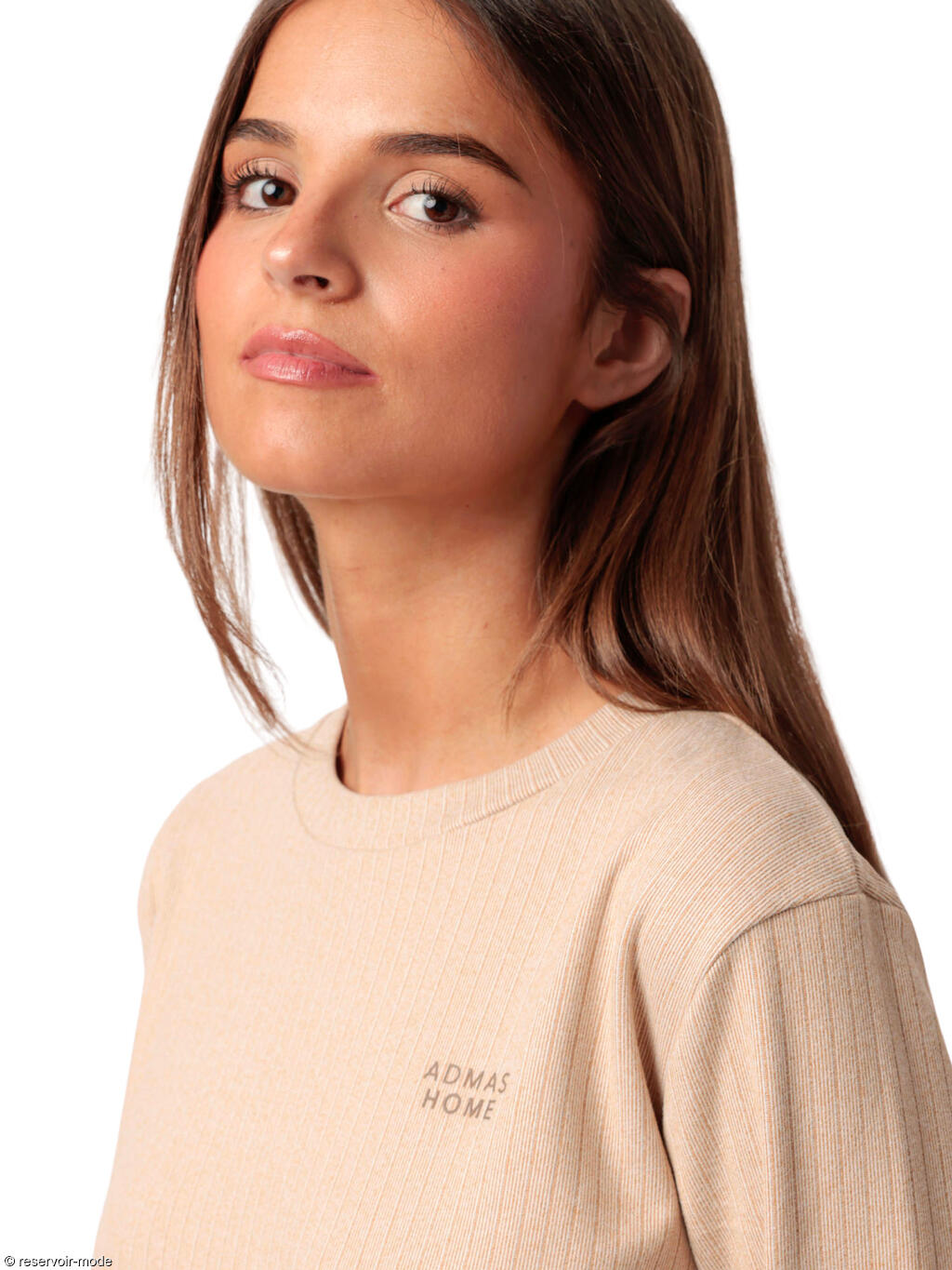 Cet ensemble de pyjama présente un style doux, cosy et minimaliste, parfait pour les soirées cocooning ou les nuits d’hiver légères. Le tissu présente un motif côtelé vertical discret, apportant de la texture et un effet légèrement structuré. Le haut de coupe droite et confortable, offre une silhouette simple et naturelle. Manches longues, légèrement amples, pour envelopper le corps de chaleur douce. Col rond classique, qui renforce le côté décontracté et intemporel. Une petite inscription brodée sur la poitrine, ajoute une touche subtile de style. Le pantalon de coupe ajustée mais souple, s’affine légèrement vers les chevilles. La bordure est légèrement resserrée aux ourlets, donnant une finition nette et évitant que le pantalon ne remonte pendant la nuit. Ce pyjama combine simplicité, confort et style naturel. La texture côtelée donne une impression de chaleur et de confort, évoquant les pyjamas d’intérieur cosy. Il est idéal pour celles qui aiment les ensembles doux, près du corps mais non serrés, avec un charme discret et moderne. Livré dans une boîte coffret Admas collection Home Comfort.