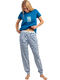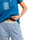 Cet ensemble de pyjama, entièrement en coton, allie confort et style décontracté. Le haut est un t-shirt à manches courtes, de couleur bleu vif. Il se distingue par un motif décoratif sur la poitrine, combinant des détails en relief et des détails brodés, qui apportent une touche de texture et de finesse au design. La coupe est droite et agréable à porter, idéale pour la nuit comme pour les moments de détente à la maison. Le bas est un pantalon long à fines rayures, conçu pour offrir une grande liberté de mouvement. Il est doté d’une ceinture élastique confortable, qui s’adapte facilement à la taille sans comprimer. Les chevilles légèrement resserrées renforcent l’aspect pratique et cosy de l’ensemble. Ce pyjama en coton se veut doux, respirant et confortable, tout en présentant des détails soignés qui lui donnent un aspect moderne et féminin. Livré dans une boîte-coffret collection Admas.
